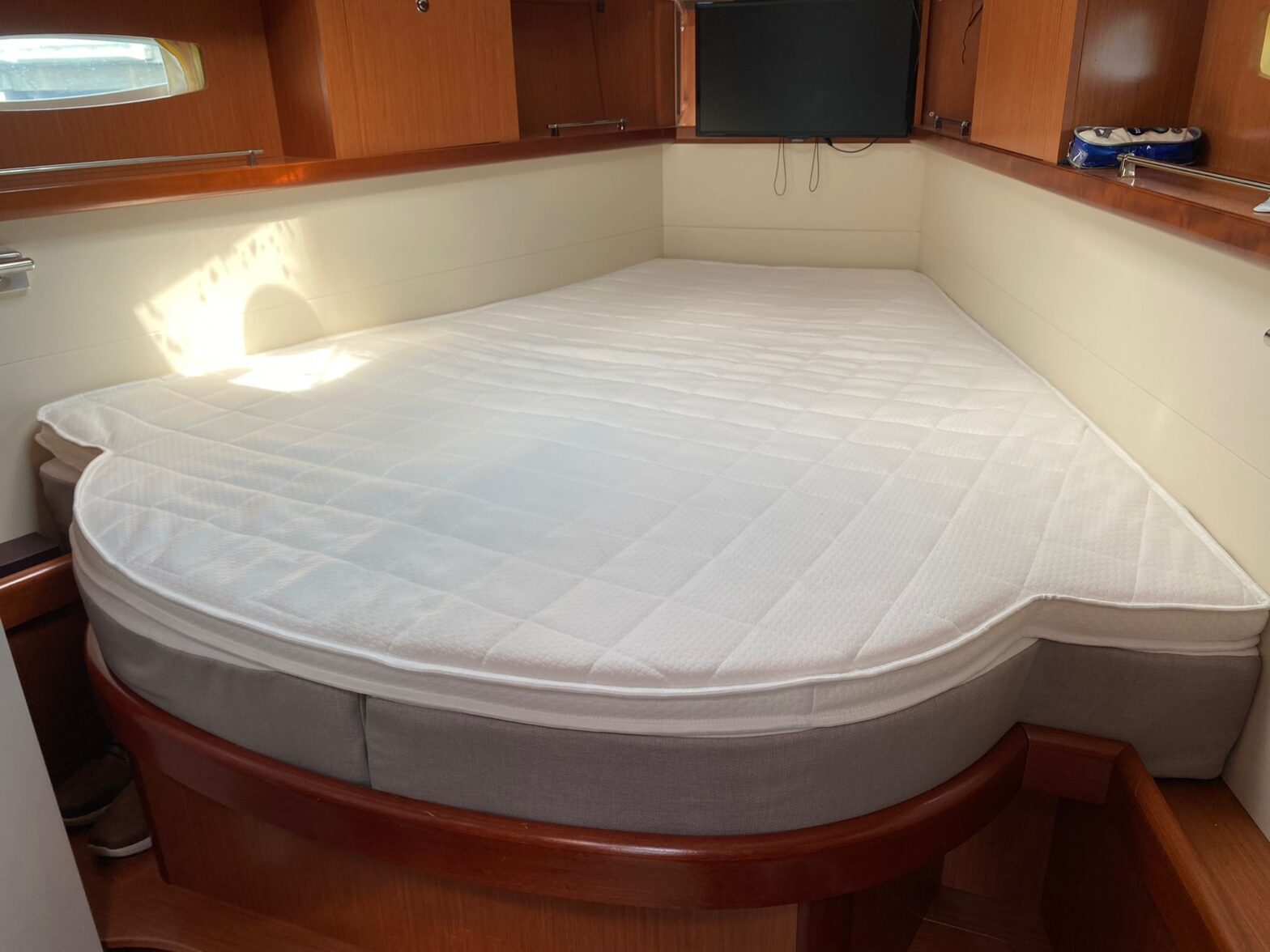 Hvis du er ude efter den absolut bedste og mest kompromisløse sovekomfort ombord, anbefaler vi en 17 cm tyk springmadras med rustfrie spiralfjedre kombineret med en 3 cm tyk topmadras. Fjedrene er umagnetiske og forstyrrer ikke bådens kompasser
